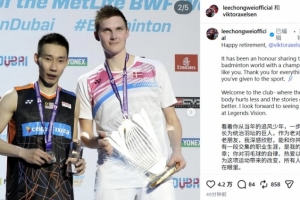 安赛龙因腰伤退役!李宗伟发文祝福:恭喜你完成了这段辉煌的征途