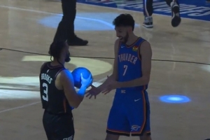 霍姆格伦:“我同样也不会把球递给他,所以,我没有往心里去。你知道,他有他自己打球时的个性,我觉得他是想把球先给他的队友,但是,在比赛开始前,我还是摸到球、找到了手感。所以一切都很好。”